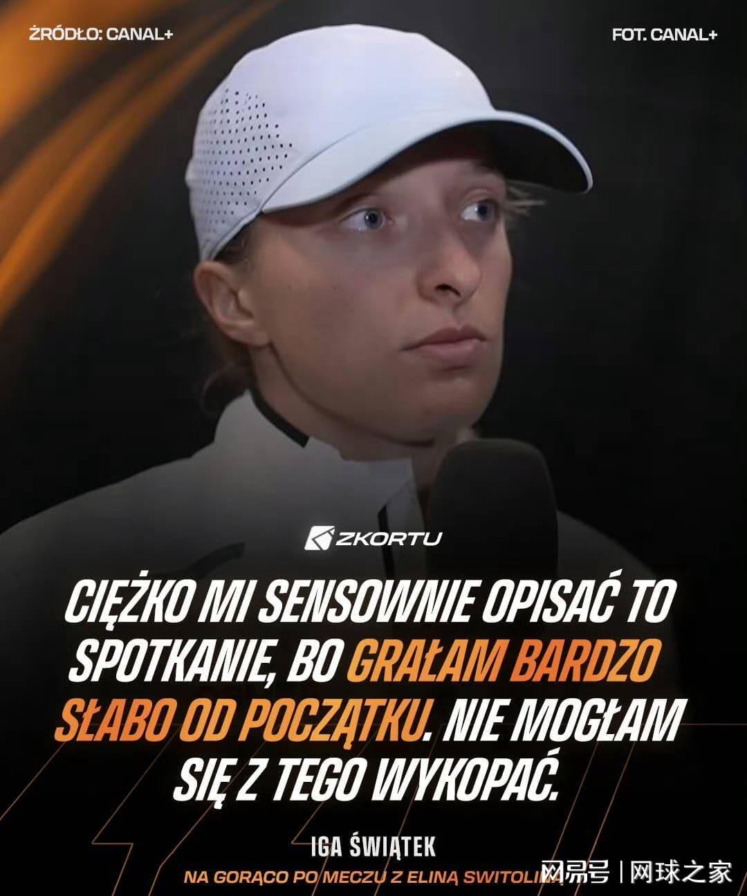 “老实说,我很难连贯地描述这场比赛,因为我从一开始就打得很糟。”斯瓦泰克语气中透露出无奈 ,“我无法摆脱困境。每当我想做出更直觉的决定,只是打自己的网球时,我就完全失误了。”